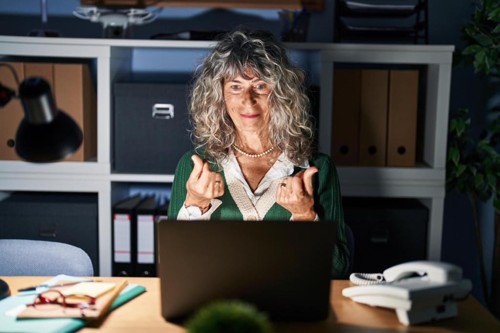 Dreimal täglich nimmst du drei bewusste Atemzüge, fokussierst drei Punkte im Raum und benennst drei Körperempfindungen. Diese Mini-Check-ins holen dich aus der gedanklichen Spirale und stabilisieren die Wahrnehmung. Stelle dir dafür Erinnerungen. Berichte später, ob du danach klarer priorisieren konntest.